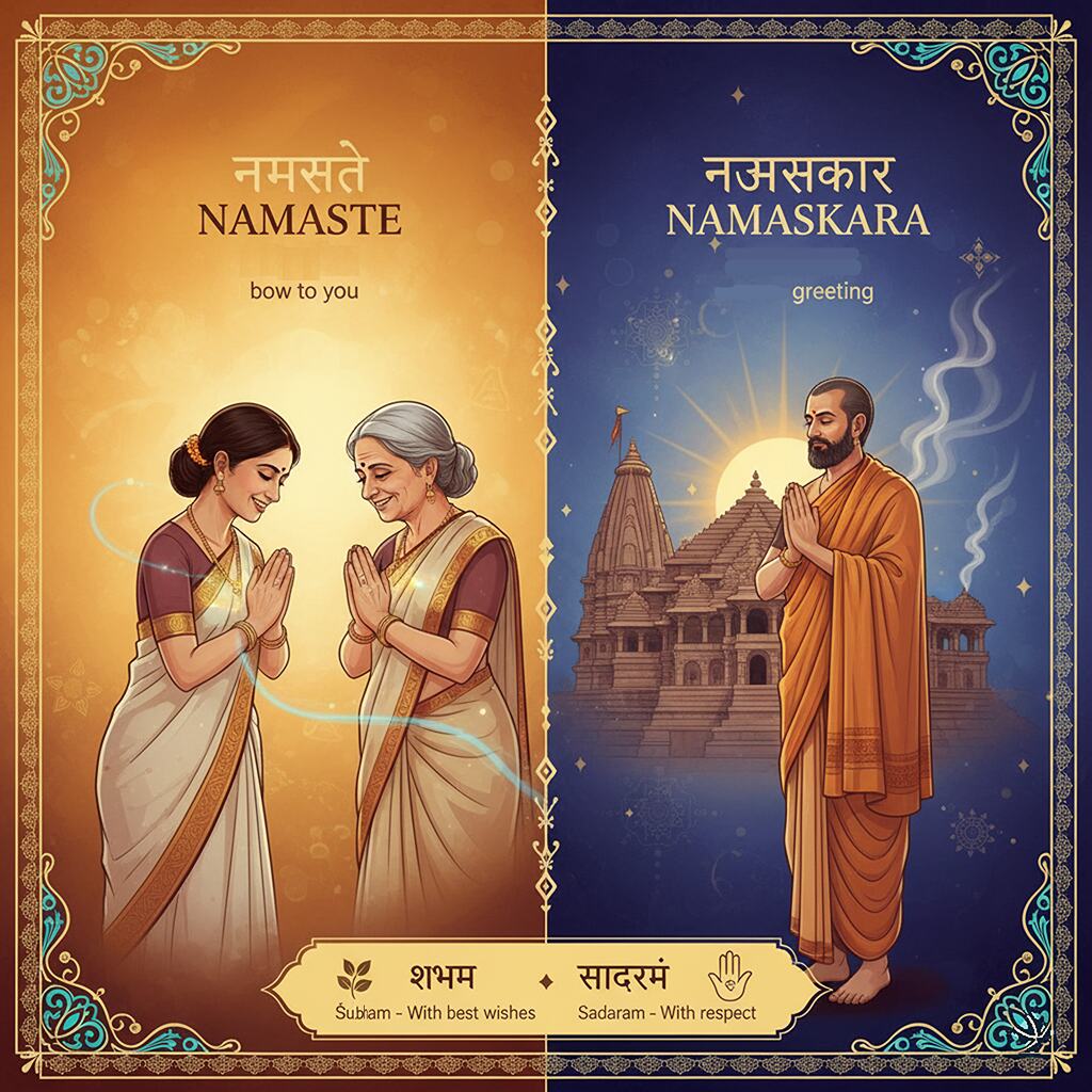 2. Namaskara [नमस्कार] — це більш формальний та загальний термін.
